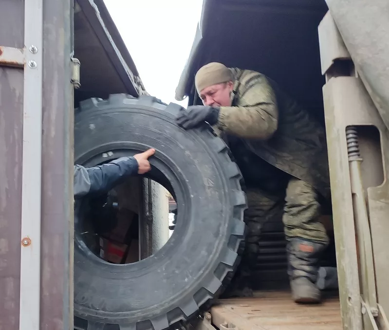 Всё происходит по отработанной схеме. «Ниссан» пятится задом к «Уралу» почти впритык, и груз из него – масксети, продукты, «гигиена» — удобно перемещается в здоровенный кузов армейского грузовика. С усилием, но перекатываются туда же два новеньких камазовских колеса. Для мужиков это особая радость.