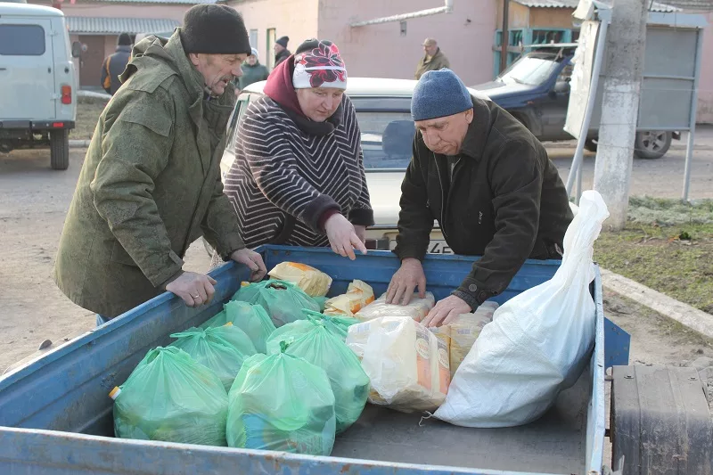 Подъехали к поселковой администрации. Возле неё, рядом с пунктом обогрева нас ждут местные жители. Почти все пожилые. Почти у всех потухшие глаза. Ни шума, ни толкотни. Несколько мужчин молча встали в цепочку и при участии Матвеева, Мошкарина и Филимонова разгружают «ГАЗель». Я же пытаюсь разговаривать с женщинами, с лиц которых война безжалостная стёрла радость жизни.