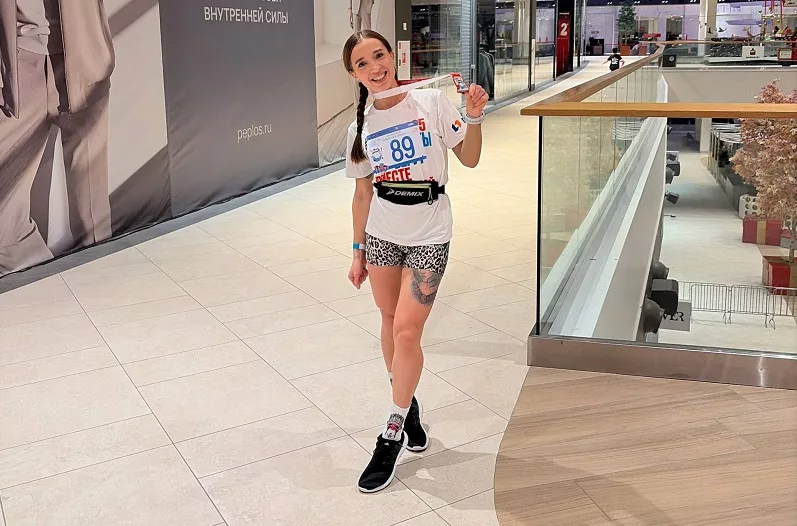 — Немного переживала, боялась упасть, подвернуть ногу, так как бежали по плитке, но все прошло замечательно! Мы пробежали пять кругов по второму этажу торгового центра, а это больше трех километров! — рассказала Екатерина.
