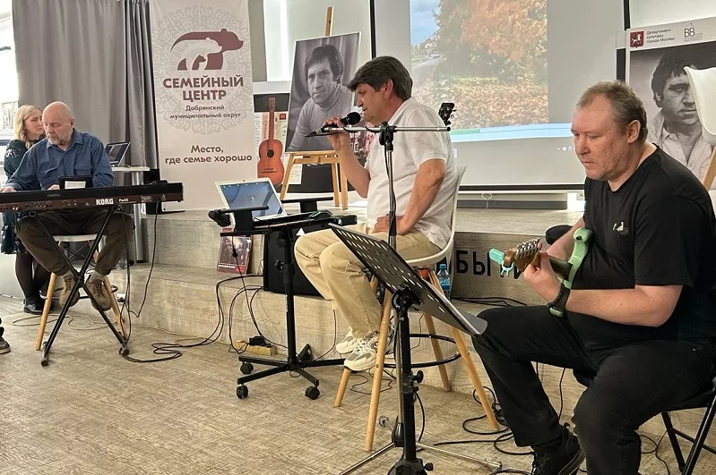 Вечер проходил в последний день работы в библиотеке выставки из московского музея Владимира Высоцкого. Подумалось, что под взорами Владимира Семёновича, пристально глядящего на публику с больших портретов, выступить плохо Олегу «со товарищи» было просто нельзя. И они выступили как надо. Сдали экзамен на пятёрку, как Высоцкому, так и напитавшимся сергеевскими стихами и песнями землякам. Может даже, на пятёрку с плюсом.