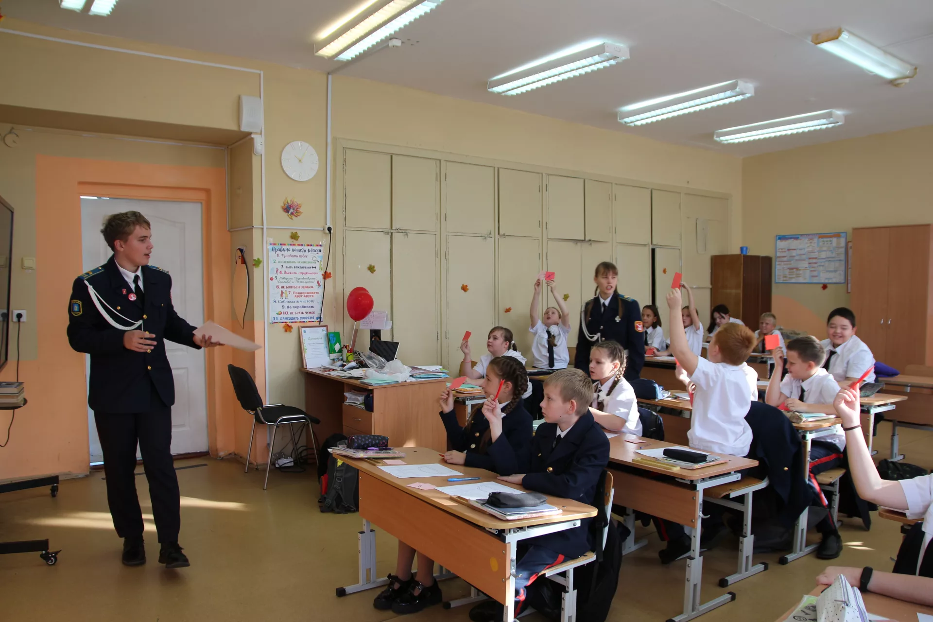 В 4 «В» классе ребята с любопытством следили за новым «учителем». Десятиклассник Всеволод Герасимов раздал каждому распечатанный материал.