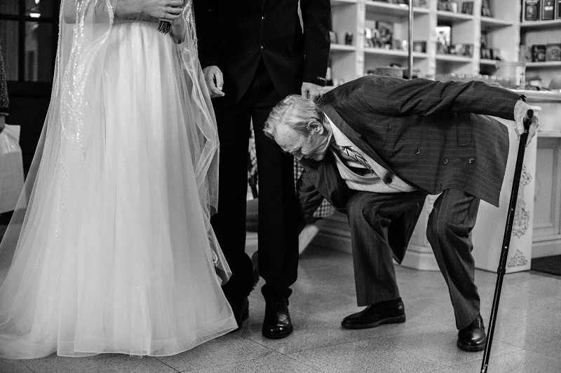 Виталию Егоровичу 89 лет. В недавнем прошлом главный технолог всех нефтеперерабатывающих заводов Пермского края. Случайный момент во время подготовки к торжественному моменту не ушёл от глаз опытного фотографа.