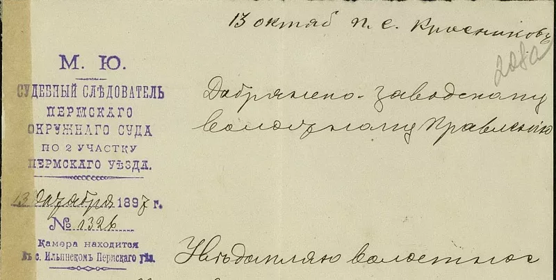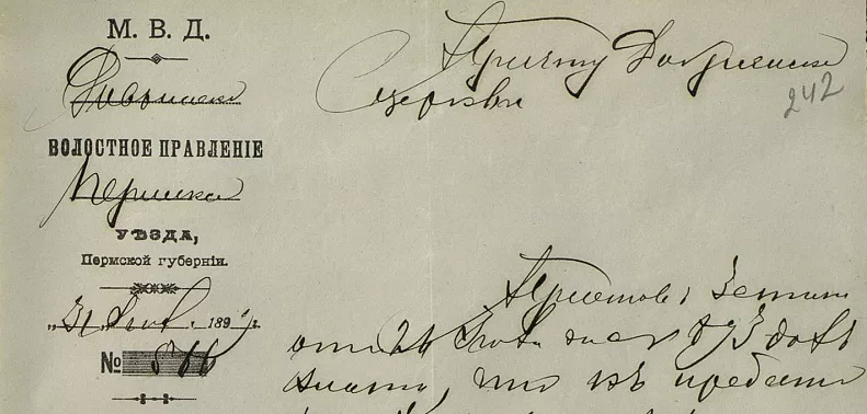 Ещё один документ того же периода относится к деятельности старшины Дивьинской волости Пермского уезда Я. Лапунова.