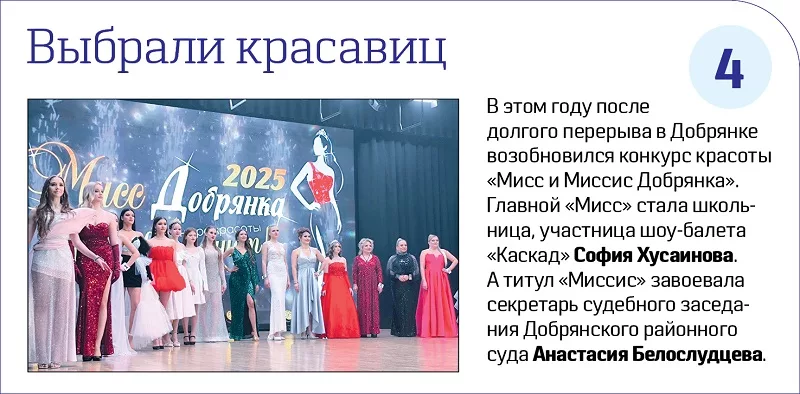 Незабываемая десятка Автор записи:РЕДАКЦИЯ Запись опубликована:31.12.2025 Рубрика записи:Общество Рекорды, достижения и самые необычные события Добрянского округа в уходящем году по версии «ЗОРИ ПЛЮС». Просм.: 28 Поделиться: Комментировать в соцсетях Теги: Добрянка, итоги, Округ Похожие материалы: Лучшие идеи воплощаются 16.06.2023 Полицейские Добрянки встретились с детьми в оздоровительных лагерях 25.07.2020 Внесут в «чёрный список» 21.05.2024