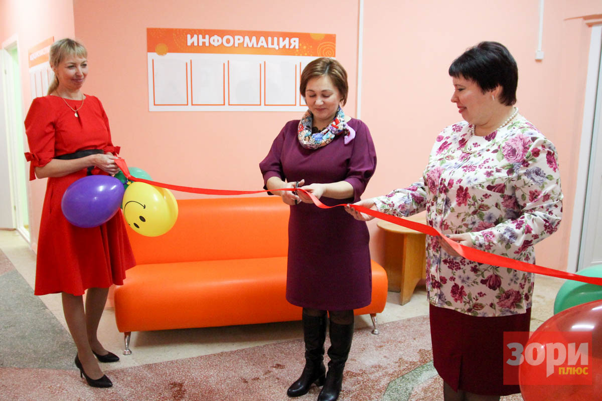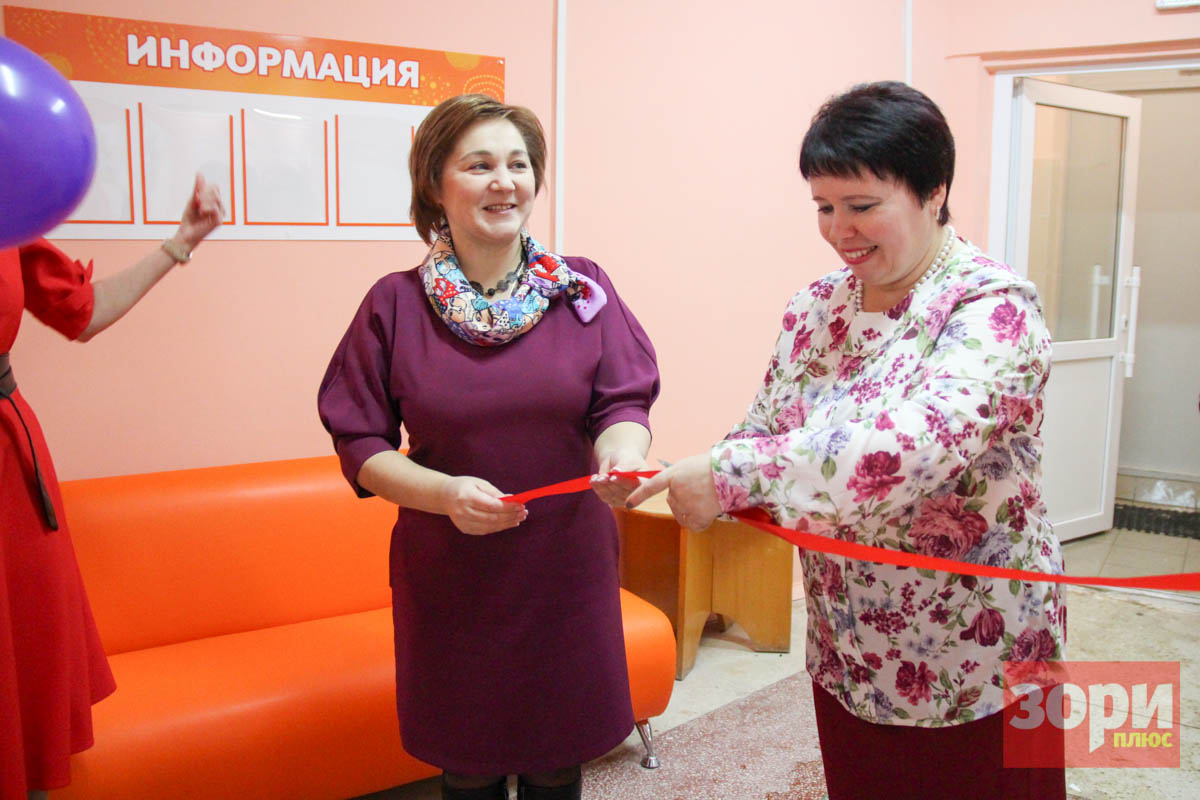 Символическую красную ленту разрезали начальник управления образования Добрянского городского округа Елена Кривенко и заведующая детсадом Татьяна Кочкина.